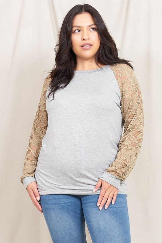 Plus Lace Sleeve Raglan Tunic
